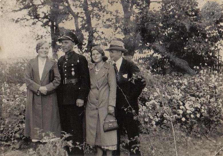 <<< | Od lewej: Ludwika Roznerska z d. Osicka – córka Teofila i Rozalii z Wolańskich, policjant NN, Marta Grzywna z d. Sztandara – córka Stanisława i Rozalii z Wichuckich, Czesław Osicki – brat Ludwiki. Własność - Krzysztof Kołwzan | >>> |
