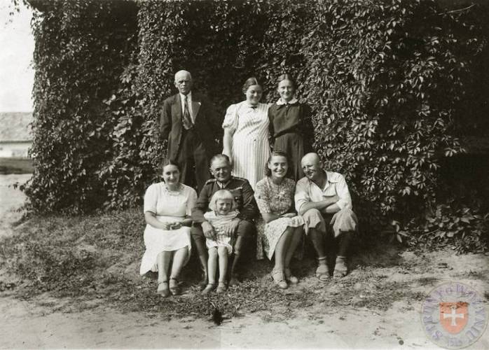 Przed werandą starej plebanii siedzą Halina Majerska