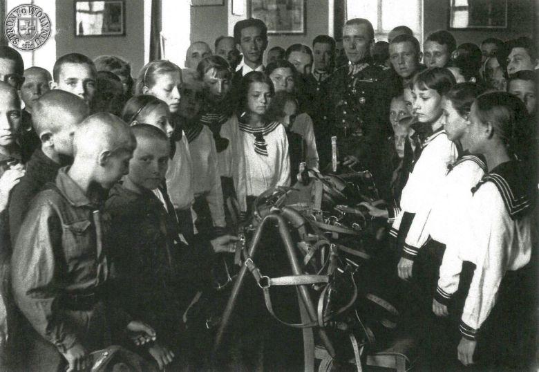 27. Wręczenie przez uczniów Szkoły z Janowej Doliny uzbrojenia dla 3. żołnierzy I Pułku Szwoleżerów im. Józefa Piłsudskiego