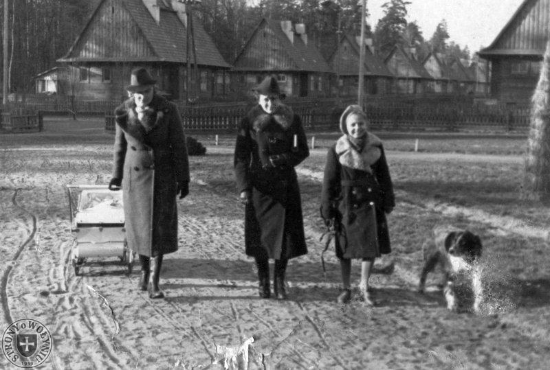 Pierwsza od lewej Irena Niwińska z wózkiem, od prawej córka Ireny - Tereska.