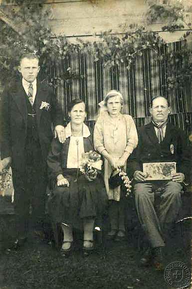 Od lewej: Adolf Kuriata (syn Józefa i Domiceli), Domicela Kuriata (z domu Sawicka), Anna Kuriata (córka Józefa i Domiceli, po mężu Kowalewska), Józef Kuriata (mąż Domiceli)
