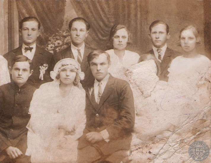 2. Zdjęcie Ślubne Marii Kozińskiej. Od prawej Stanisława jeszcze Lech - siostra panny młodej i Hieronim Chmielewski