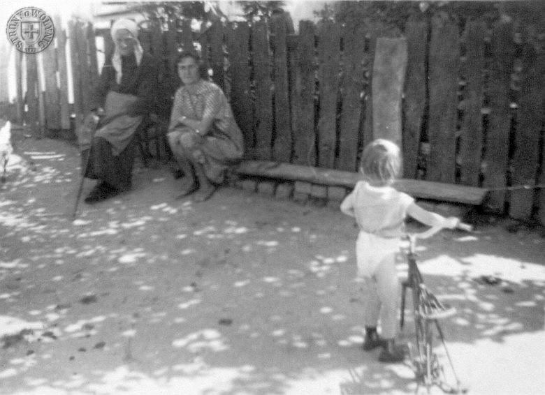 3. Rodzina Skowrońskich przy płocie Józefa Ostrowskiego.