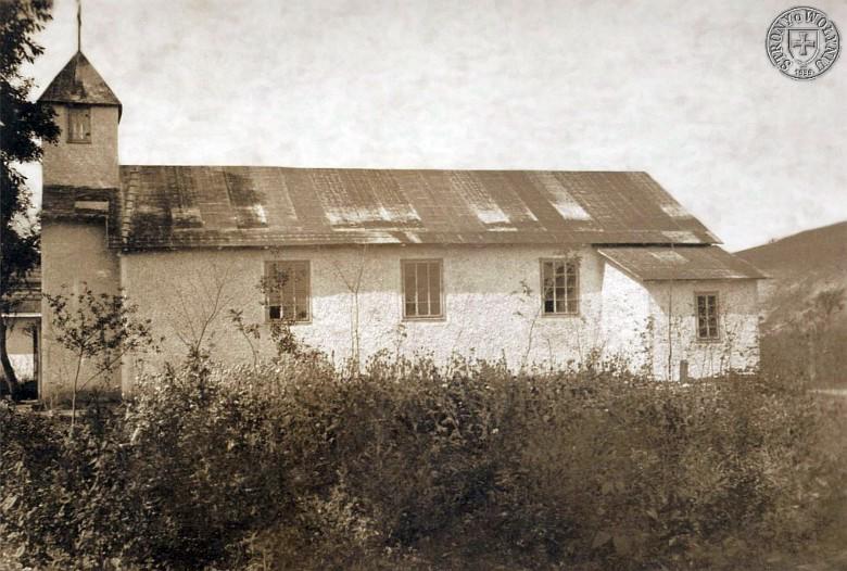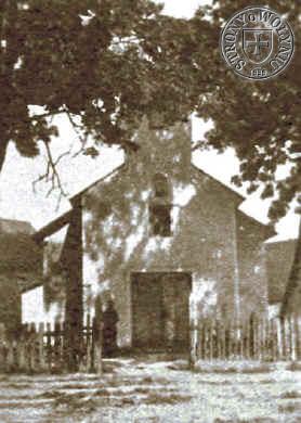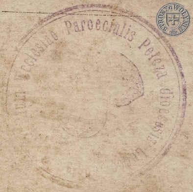 Poniżej pieczątka na rewersie zdjęcia oraz widok kościoła z przodu.