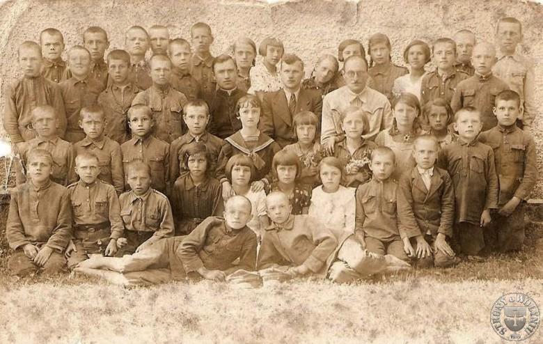 Wśród nauczycieli siedzi ks. Bolesław Murawski.