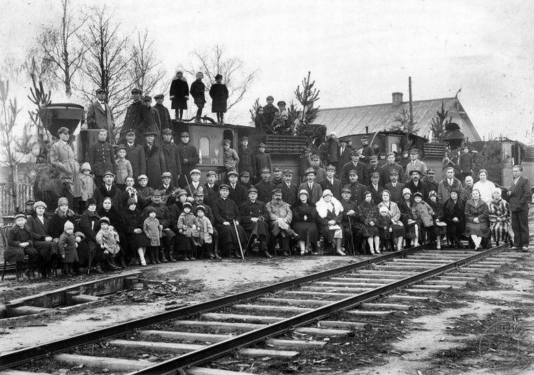 3. Fotografia pracowników kolejki wąskotorowej Rokitno - Moczulanka z 1928r. wykonanej w Rokitnie.