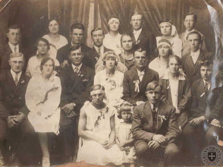 188. Fotografia pary młodej i gości.