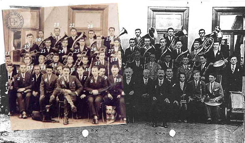 <<< | 1. Zdrojewski Edward, 2. Straszewski Franciszek, 3. ?, 4. Chejfis urzędnik biura huty, 5. Mingało , 6. Franzlajch - współwłaściciel huty, 7. ?, 8. Miler Stanisław, 9. ?, 10. Dyrektor Huty Stępniewski, 11. Zdrojewski Jan, 12. Linde Bernard, 13. Szeliga, 14. Popławski Dominik, 15. Miler Stanisław, 16. Szajewski Jan, 17. Kozłowski Jan, 18. ?, 19, Bader Stanisław, 20. Szajewski Jan, 21. Dytkowski Tomasz, 22. Gadzieliński, 23. ?, 24. Miler Stanisław, 25. Szajewski, 26. Klonowski, 27. Kambół, 28. Kozłowski Marian, 29. ? | >>> |