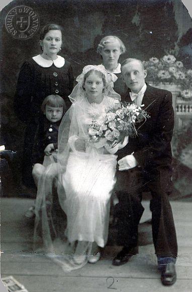1939 r. Ślub Leonarda Nachtmanów i Janiny Kozak, stoi Henryka Nachtman (Wójcik)