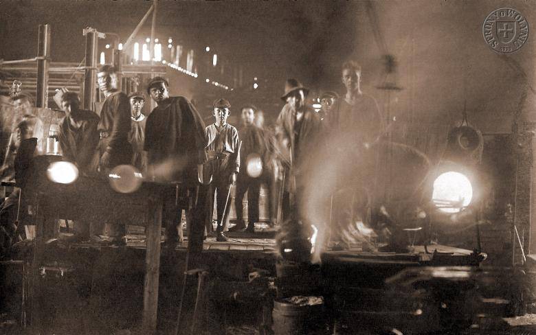65. Podczas pracy w hucie (Władysław Kozłowski pierwszy w czapce)
