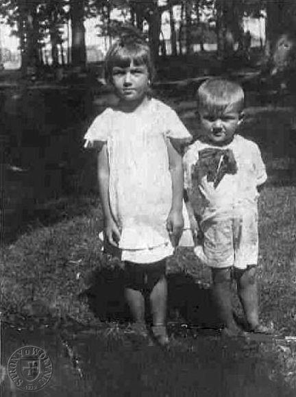 W parku. Rodzeństwo rodziny hutniczej - Sabina i Stanisław Zdrojewscy