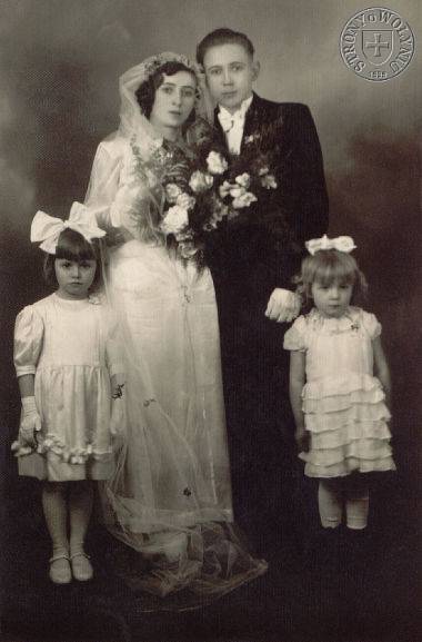 Młoda para z druhnami: od lewej Maria Wojciechowska i Kazia Widmańska.