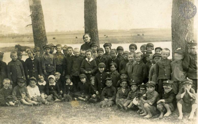2. Nauczycielka Banasińska z uczniami szkoły w Turzysku.