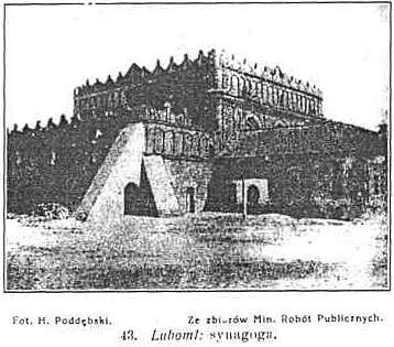Miasto należało zawsze do ziemi chełmskiej, w r. 1356 przyłączone zostało wraz z nią do Korony, i nadane w dzierżawę lenną księciu bełzkiemu Jerzemu Narymuntowiczowi. Z czasem utworzono tu starostwo grodowe, które za Zygmunta III wcielono do dóbr stołowych królewskich. W r. 1659 sejm nadał je w dożywocie hetmanowi Kozaków Wyhowskiemu. Ostatnią starościną była w r. 1771 Antonina Rzewuska, Do starostwa należały procz miasta wsie: Zawale, Skiby, Rymacze, Jagodzin, Zapole, Hołowno, Bereźne, Lubochinie, Wiśniów, Nudyże, Krymno, Kościszcza, Rejowicze, Mosfor, Olesko, Komorów, Szack, Szczodrogost, Zabrodzie, Powiecie, Tur, Kortylesy, Samorowice i Radosław. W końcu XVIII w. nabyli dobra hr. Braniccy i założyli tu swą rezydencję z pałacem i parkiem. Uległa ona zniszczeniu, gdy w r. 1870 dobra przeszły na rząd rosyjski.W dobie Jagiełły był tu zamek, zapewne drewniany, po którym pozostały okrągłe wały obok rynku. Pod wałami są lochy i sklepione podziemia po pałacu, hr. Branickich, który uległ zniszczeniu, pozostały tylko oficyny z XVIII w. w których Rosjanie urządzili urzędy. Obecnie mieści się tu magistrat i kasyno urzędnicze. Obok pałacu pozostał dawny park, zamieniony obecnie na ogród publiczny. Obok pałacu i w rynku Braniccy w końcu XVIII w. urządzili osobliwe chodniki z końskich zębów na cementowem podłożu.Najcenniejszym zabytkiem Lubomli jest stojąca na rynku wśród domów żydowskich murowana synagoga, niegdyś obronna, wzniesiona po r. 1521, ozdobiona polską attyka renesansową. Wewnątrz sklepienie wsparte na czterech filarach, wśród których urządzona bema, wyżej filary te przechodzą w jedna okrągła kolumnę. Po drugiej stronie rynku stoją dawne sukiennice, wzniesione przez Branickich w pierwszej połowie XIX w. Jest to długi parterowy budynek o dwóch skrzydłach, łączących się pod kątem prostym, w którym mieści się szereg sklepów. Kościół fundacji króla Jagiełły z. r. 1412, pierwotnie gotyk, wielokrotnie przebudowywany otrzymał w pocz. XIX w, barokowy wygląd. Obok barokowa dzwonnica z r. 1640. Cerkiew zbudowana w epoce baroku, która stała obok wałów zamkowych, spaliła się w r. 1921. Według podania miejscowego pierwotna cerkiew pochodziła z czasów Jagiełły. Na starym cmentarzu żydowskim rośnie pięć okazałych dębów, w wieku ponad 500 lat. W okolicy Lubomli: Horodno (8 km. na północny wschód) Dobra p. Rucińskiej, której stary pałac zniszczyli w r. 1915 Austryjacy. Kaplica z XVII w. Sztuń (8 km. na południe), gdzie w czasie wojny, popadł w ruinę pałac Wydźgów z XVIII w., obrabowany przez wojska i ludność miejscową. Na południe od Sztunia, Ziemlica, z kaplicą katolicką. 20 km. na południe z Lubomli Stawki wieś z cerkwią i kaplicą drewnianą. Jagodzin (58 km.) wieś o 1000 m. dawne dobra starostwa lubomelskiego. 8 km. na północ Ostrówek, z kościołem drewnianym z r. 1838. 15 km. na południa Bienduga, wieś nad Bugiem, położona naprzeciw miasteczka Dubienki. Jak wskazuje nazwa jest to dawna przystań nadrzeczna, gdzie z licznych dawnych spichlerzy pozostał tylko jeden, stojący obecnie pustką. Są to dawne dobra Wydźgów, potem Kroczyńskich. Stary dwór jakoby zbudowany przez Sieniutów-Lechowickich, jeszcze w XIV w., ma obszerne lochy, gdzis wedle podania podkomorzy Kazimierz Wydźga w połowie XVIII w. więził żydów z Dubienki, aby ich skłonić do przyjęcia chrztu. Kościół drewniany z r. 1845. Ludność wsi katolicka, ma charakter raczej małomieszczański niż wiejski. Na przeciwnym brzegu Bugu pod Uchanką Kopiec Kościszki, mogiła poległych w bitwie pod Dubienką 6 czerwca 1794 r. Przed następną stacją Dorohuskiem (67 km.) na moście na Bugu opuszcza pociąg granice obecnego województwa wołyńskiego. Przesiadając się w Chełmie (88 km.) na linję do Brześcia jedziemy ku północy wzdłuż Bugu, mając na prawo za rzeką terytorjum wołyńskie, a najbliższe stacje tej linji, są stacjami dojazdowymi dla szeregu miejscowości na Wołyniu. Najbliższą stacją za Chełmem jest Ruda-Opalin (16 km. od Chełma), 10 km. na wschód nad Bugiem po stronie wołyńskiej leży miasteczko Opalin, mające 1600 m. w połowie żydów. Niegdyś wieś starostwa hrubieszowskiego, otrzymała prawa miejskie od marszałka wielkiego koronnego Łukasza Opalińskiego, w r. 1638. Kościół zamienili Rosjanie na cerkiew. Na wschód pod Hołownem żródła Prypeci. Tak miasteczko, jak i cała okolica leży w dawnej ziemi chełmskiej. Piątą stacją za Chełmem jest Włodawa (51 km. od Chełma). Stacja położona na prawym brzegu Bugu leży w wysuniętym na południe klinie województwa poleskiego, opodal miejsca nad Bugiem, w którym schodzą się granice trzech województw, lubelskiego, na terytorjum którego leży położone na lewym brzegu Bugu miasto Włodawa, poleskiego na terytorjum którego leży stacja Włodawa i wołyńskiego, którego terytorjum zaczyna się 2 km. na wschód od stacji. Na terytorjum Wołynia w odległości 8 - 20 km. na wschód od Włodawy leży grupa wielkich jezior wołyńskich. Najdalej na zachód wysunięte jest jezioro Pulemieckie, owalne, 6 km. dł., 4 km. szer., nad którem po jednej stronie leży wieś Pulemiec, po drugiej Pulmo, o 1700 m. z cerkwiami i dworem.
