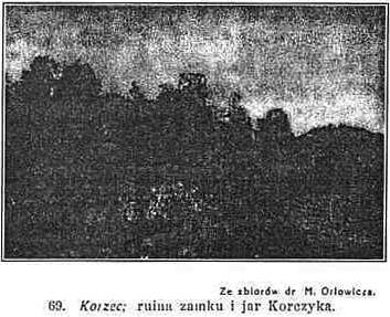 | 65 km. od Równego leży miasto Korzec, Jest to miasteczko o 5.000 mieszk. z większością żydowską, położone nad rzeką Korczykiem tuż nad granicą sowiecką.Hotele : Wajmela ul. Kościuszki. Centralny ul. Kościuszki 83. Warszawski Rynek 12. Europa Rynek 18. Mełameda. Restauracja: w Klubie Szachistów, Gwiazda Rynek 16, Strzecha Polska Rynek 18.Dzieje miasta . Korzec jest grodem bardzo starym, a niegdyś nazywał się Korczesk i leżał w ziemi Derewlan. W dobie podziału Wołynia na dzielnice był stolicą udzielnego księstwa, którym władali książęta Koreccy, zasłużeni w obronie kresów przed Tatarami. Ród ten wygasł w r. 1651 na ks. Samuelu Karolu, staroście rybczyckim, poczem majątek przeszedł na Leszczyńskich, a po nich na Czartoryskich.Z rodziny tej był najwybitniejszą postacią ks. Józef Czartoryski, który w końcu XVIII wieku uczynił z Korca jedno z najbardziej przemysłowych i najpiękniejszych miast Wołynia. Na przedmieściu Józefin założył on sławną fabrykę parcelany, na której kierowników sprowadził w r. 1780 z Sevres Francuzów Franciszka i Michała Mezerów. Fabryka tu zatrudniała do 1000 pracowników, a jej wyroby cieszą się do dzisiaj znacznym rozgłosem.Nie ustępują one saskim i serwskim tak pod względem materjału jak i artyzmu wykonania, dzięki czemu "porcelana korecka" zyskała sobie sławę w całej Polsce. Niestety fabryka spaliła się w r. 1797. Ponadto ks. Józef Czartoryski założył w Korcu fabrykę mebli , której tradycja artystyczna trwała do połowy XIX wieku, oraz fabrykę pasów, zwanych koreckimi. Były to pasy jedwabne złotem tkane noszone przez szlachtę przy kontuszu.W XIX wieku upadł Korzec, tembardziej, że przy budowie linji kolejowych pozostał na uboczu a brak kolei nie pozwala dotychczas na należytą eksploatację jego bogactw naturalnych, t. j. pokładów granitu i glinki porcelanowej. Włość korecka zjednoczona niegdyś z międzyrzecką, rozciągala się na przestrzeni 1900 km. kw. i posiadała razem dwa miasta i 57 wsi, z czego włość korecka 21 wsi, międzyrzecka 36 wsi. Kilka z nich leżało już za Słuczą, na terytorjum województwa kijowskiego. Całą część północną koreckiego księstwa zajmowały poleskie bagna i lasy. Korzec leży w urodzajnej okolicy na wyżynie wznoszącej się nad jarem, utworzonym przez rzekę Korczyk. Miasto zabudowane jest brzydkimi parterowymi domkami i kamieniczkami, zamieszkałemi przez żydów i należy do brudniejszych wśród tej wielkości miast Wołynia. Piękny niegdyś i oryginalny ośmioboczny rynek, o francuskiem założeniu, zabudowany w końcu XVIII w. według planów ks. Józefa Czartoryskiego, został w XIX wieku całkowicie zniekształcony przez zbudowanie na środku rynku wzdłuż szosy brzydkich i bezstylowych żydowskich domów, które odebrały rynkowi charakter placu a zmieniły go na brudny zaułek. Wśród sklepów żydowskich w rynku i przy sąsiednich ulicach zwraca uwagę niespotykana nigdzie w tak dużej ilości ilość składów aptecznych.Między Rynkiem a jarem Korczyka stoi na granitowej skale ruina zamku ks. Czartoryskich. W połowie XVI wieku wystawił go jako zamek obronny ks. Bogusz Korecki wojewoda wołyński, później w XVII wieku został przebudowany na mieszkalny pałac barokowy, ostatniej przebudowie w końcu XVIII wieku poddał go ks. Józef Czartoryski. W r. 1832 pałac spłonął i nie został już odbudowany. Obecnie należą ruiny do hr. Jadwigi Bnińskiej. Zdobi je duża wieża z bramą wjazdową. Od strony miasta most zwodzony. Jak wskazują zachowane mury pałac był wzniesiony z cegły. Poniżej pałacu od strony jaru Korczyka zachowały się stare grube mury, po pierwotnym zamku ks. Koreckich, natomiast późniejsze bastjony i wieże zniszczały bez śladu, Z ruin ładny widok na jar Korczyka i położone za nim przedmieście Nowy Korzec.