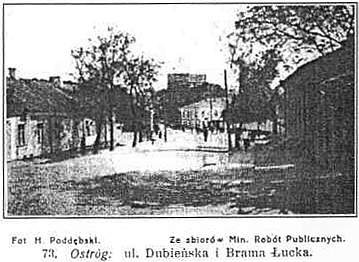 | Dojazd z Ożenina (12 km.) autobusem, po szosie zbudowanej w r. 1927. Po drodze mija się wieś Chórów (6 km.), niegdyś dobra Ostrogskich, na mocy transakcji kolbuszowskiej, kanclerza Małachowskiego, który fundował piękną cerkiew unicką. Po konfiskacie dóbr jego w r. 1794 otrzymał je od rządu rosyjskiego gen. Fersen, w r. 1802 nabyli je Ilińscy, w r. 1873 rząd rosyjski. Zbacza stąd droga przez most na Horyniu do Kurhan.Dalej mijamy wieś Rozważ (10 km.) z mogiłami Tatarów, pogromionych tu w r. 1508 przez ks. Konstantego Ostrogskiego, oraz cerkwią drewnianą z r. 1781 fundacji Łomlewskiego. Rozważ łączy się bezpośrednio z przedmieściem Ostroga. Hotele : Francuski ul. Dubieńska 22, Europejski ul. Dubieńska 31, Wiktorja ul. Dubieńska 20, Warszawski ul. Dubieńska 27.Restauracje ; Gawryluka ul. Handlowa 18, Klub "Ognisko" ul. Dubieńska 26, Jadłodajnia Dmitruka ul. Dubieńska 31.Kawiarnia : Potackiej ul. Dubieńska 24.Dzieje miasta . Ostróg należy do najstarszych grodów Wołynia, a pierwsza wzmianka o nim pochodzi z r. 1100. W szczególności Nestor w swojej kronice wspomina o Ostrogu jako o mieście z zamkiem, który należał do wnuka Jarosława, ks. Dawida Igorowicza razem z zamkami w Dubnie, Zasławiu, Czartorysku i Drohobużu. W wieku XIII w czasie najazdów tatarskich zapewne został Ostróg zniszczony jak wszystkie inne grody wołyńskie, a zaczął się podnosić dopiero w początkach XIV wieku za rządów litewskich. Z nadania ks. Lubarta Giedyminowicza przechodzi Ostróg na ród ks. Ostrogskich, a odtąd losy miasta wiążą się ściśle z dziejami tej rodziny. Szczególnie zasłużonymi dla rozwoju miasta byli ks. Daniło, który odbudował zamek, ks. Fiedor, który fundował kościół, ks. Wasyl Piękny, który ufortyfikował zamek, wzniósł cerkiew zamkową i ratusz, ks. Konstanty I, który fundował murowaną cerkiew zamkową, a wreszcie Konstanty II który uczynił z Ostroga wybitne ognisko oświaty, zakładając tu szkoły i drukarnie.