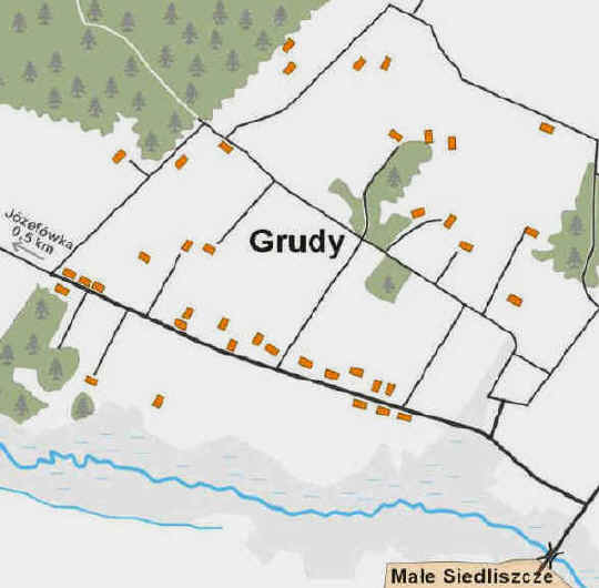 Inaczej również HRUDY. Projekt WYKAZU GOSPODARSTW, stan w około 1939 r. 1. | BRONOWICKI | Wincenty - s. Hilarego i Rozalii z d. Kondracka, podwójny wdowiec: I ż. Wiktoria Ryszczyńska, II ż. Apolonia Słodkowska z synem (Jan?), III żona Aniela 1888-1953 (Antolin-Mrozów, Dln Śl.) z d. Żygadło z Antolina; dzieci: Maria (Kowalska, poniżej), Leokadia (zmarła w 1 roku życia). | | KOWALSKI | Franciszek 12.08.1913-22.03.1942 - s. Pawła i Zofii z d. Lewandowska, żona Maria 10.09.1917-20.03.1941 z d. Bronowicka - c. Wincentego i Anieli z d. Żygadło, dziecko: Teresa 13.05.1939-1969 (po m. Ciechońska zm. w Wałbrzychu). Małżeństwo zmarło na gruźlicę (Maria będąc w ciąży), pochowani w Annowoli. Dzieckiem zaopiekowała się babcia Aniela (po wojnie w Zagórzycach na Dolnym Śląsku). | 2. | ŻUKOWSKI | IN., córka Maria (zamordowana siekierami razem z córeczką lat 3 w Małym Siedliszczu w czasie napadu ukr. w nocy z 25 na 26 maja 1943 roku). | 3. | FEDOROWICZ | Władysław - s. Kazimierza (w Grudach od 1901 r., jego żoną była Karolina z d. Pietruszkiewicz) oraz jego syn Jan 1874-24.07.1942 z rodziną: żona Helena z Kosarzyckich, dzieci: Adam (poniżej), Anna (m.Józef Dziarnowski, po wojnie w Toruniu, nie żyje), Wacław +2004 (żołnierz I Armii WP. po wojnie w Szczecinku), Jan +1985 (żołnierz I Armii WP - II Brygada Artylerii Haubic biorąca udział w zdobyciu Berlina), Leontyna (m.Edward Wojtas - od 1945 r. w Bielawie na Górnym Śląsku). | | FEDOROWICZ | Adam 2.09.1908-? - s. Jana i Heleny z d. Kosarzycka, żona Katarzyna 24.07.1907 z d. Żarczyńska, dzieci: Stanisława 1939, Janina 21.04.1940, Helena 20.02.1942. Adam - żołnierz I Armii WP, od 1945 r. mieszkali w Bielawie na Górnym Śląsku. | 4. | SEWRUK | IN., żona Adela +26.05.1943, syn +26.05.1943 i córka +26.05.1943. Zamordowane z matką Sewruka w Małym Siedliszczu. | 5. | PIOTROWSKI | - rodzina, w tym Franciszka. | 6. | DZIARNOWSKI | Józef, żona Anna. | 7. | ŻARCZYŃSKI | Edward 1877-26.10.1940 - s. Piotra i Anastazji z d. Bolechowska, żona (śl.1902) Dioniza 1880 z d. Kosarzycka, wdowa po Janie Kuczyńskim (s.Józefa i Elżbiety z d. Słotwińska), dzieci: Hieronima (z pierwszego małżeństwa mieszkała już gdzieś indziej z mężem), Mieczysław i jego żona Helena, Helena (Bagińska, w Małej Kupli), Adam (poz.9). Po wojnie w Prabutach. | 8. | ŻARCZYŃSKI | Adam - s. Edwarda i Dionizy z d. Kosarzycka, żona Maria,
