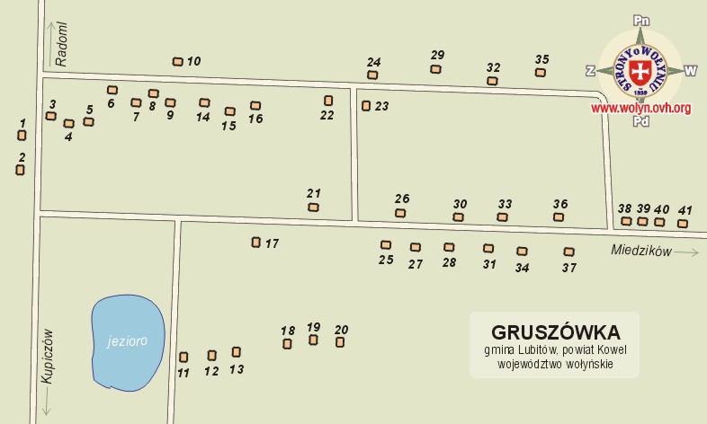 | wieś i kolonia GRUSZÓWKA gromada Gruszówka, gmina Lubitów, powiat Kowel, woj. wołyńskie parafia r-k w Zasmykach
