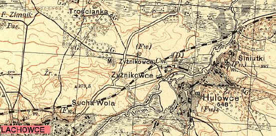 | Ze Słownika Geograficznego Królestwa Polskiego i innych krajów słowiańskich -T III. wyd. 1882 r. Hulowce, wś, pow. ostrogski, na południe Ostroga o 35 w.; względem miasteczka Lachowiec na płd. o w. 6 położona, nad rz. Horyniem; w H. są okopy obronne. Ziemia popielata z podkładem kredy lecz urodzajna, miejscowość górzysta; pierwotnie należały do ks. Ostrogskich, później do Jabłonowskich, a gdy Teofila ks. Jabłonowska wyszła za ks. Lwa Sapiehę, przeszły do rąk Sapiehów. W r. 1822 przez kupno dostały się dziedzicowi Zaleskiemu. Jest tu fabryka maszyn rolniczych i cerkiew parafialna; na rz. Horyń dwa młyny o 8 kamieniach. Z.Róż. | | < fragment mapy polskiej z 1922 r |