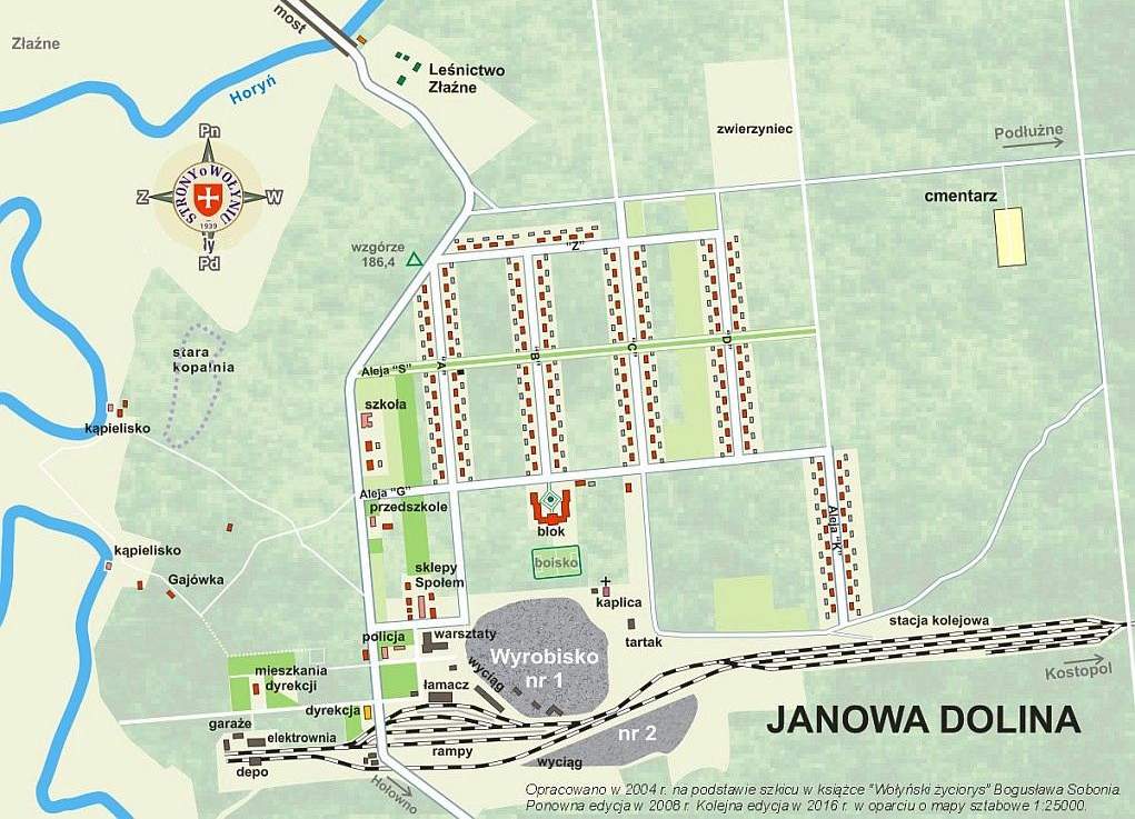 Relacja Stanisława Cichawy: W latach 30-tych po wyjściu z ziemianki w której mieszkaliśmy koło Janowej Doliny, jako jedyna Polska rodzina zamieszkaliśmy we wsi Hołowin u gospodarza Czyguna, jedynego uczciwego z cała swoją rodziną Ukraińca. Reszta to bandycka wieś (z tej wsi mordowali w Janowej Dolinie). W Hołowinie ukończyłem 2 klasy zanim przenieśliśmy się do Smolarni pod Janową Dolinę. Z rówieśnikami ze wsi Hołowin miałem stale kontakty i bójki, bo musiałem chodzić do jedynego sklepu, który był w tej wsi. Starsi zawsze napuszczali na mnie młodszych: bij Lacha. Bili mnie i ja ich. Wiem, że z tej wsi zlikwidowali naszych ze Smolarni. Do dziś nie wiem kto z nich uszedł z życiem. Smolarnia i Janowa Dolina. Wykarczowane pieńki pod teren kopalni były przerabiane na dziegieć i smołę. Żyd, właściciel terenu sprzedał plac, który kupili pracownicy kopalni i pierwotnie zamieszkali w ziemiankach. Janowa Dolina była w trakcie budowy Finskich domków. Hanel obok ziemianki postawił drewniany domek, myśmy u niego zamieszkali. Ta nazwa po smolarni pozostała, ja chodząc do szkoły w Janowej Dolinie do wybuchu wojny 1939 ukończyłem 5 klas. Ojciec uciekając do Zdołbunowa przed Sowietami w 1940 roku ściągnął nas do swojej Mamy, naszej Babki. Co się stało z Hanelami, Tomczykami, Probuckimi, nic mnie nie wiadomo, oprócz tego ze mieszkający w Janowej Dolinie Sawicki Bronisław - mąż mojej mamy siostry Oleksandry, ich córka Basia, babcia mojej mamy zginęli zamordowani (podobno spaleni) w bloku Z (ulice oznaczone były alfabetyczne). Fragment relacji Władysława Kobylańskiego (...) Janowa Dolina - kwiecień 1943 r. Janowa Dolina znana była powszechnie z bogatych złóż kamienia bazaltowego. Masakry ludności polskiej dokonali nacjonaliści ukraińscy spod znaku tryzuba w Wielki Piątek 1943 r. Nożami, siekierami, kulami z broni palnej zamordowano w bestialski sposób około 600 osób bez względu na wiek, płeć i stan zdrowia. Polacy z Janowej Doliny nie byli w najmniejszym stopniu przygotowani do obrony. Dobrze uzbrojeni mordercy pastwili się nad życiem bezbronnej ludności, nawet psychicznie nieprzygotowanej do stawiania oporu. Świadkowie tej masakry - byli mieszkańcy Janowej Doliny, Jan Karwan i jego żona Jadwiga, z którymi zapoznałem się w Chicago w 1988 r. - mimo tak dużego dystansu czasu jeszcze z trudem, ze łzami w oczach po przeżytym szoku opowiadali o przebiegu masakry ludności polskiej w Janowej Dolinie. "W Wielki Czwartek 1943 r. na ulicach Janowej Doliny pojawiło się bardzo dużo schutzmanów (policji ukraińskiej w służbie niemieckiej). Miejscowa ludność ukraińska, jak i my, Polacy, była bardzo zaniepokojona ich przybyciem. Niektórzy Ukraińcy radzili Polakom ucieczkę do lasu, inni zabierali Polaków do swoich domów i przechowywali ich w ukryciu. Między innymi nas i nasze dzieci przechowywał w swoim domu Ukrainiec Wasyl. Atmosfera zagęszczała się. Do Janowej Doliny przybywały dalsze jednostki policji na służbie niemieckiej. Pojawił się nawet oddział policji składającej się z Litwinów i Łotyszy. Była też widoczna obecność miejscowych służb wojska niemieckiego. Wasylowie informowali nas na bieżąco, że policja chodzi i zbiera informacje, w których domach mieszkają Polacy, a w których Ukraińcy. W Wielki Piątek po zmierzchu rozpoczęła się rzeź bezbronnych. Po wymordowaniu Polaków w ich domach zaczęto również sprawdzać, czy w domach ukraińskich nie ma Polaków. Polacy wykryci (zadenuncjowani) w domach ukraińskich byli mordowani na miejscu, w obecności rodziny ukraińskiej. Były też przypadki, że wraz z Polakami zamordowani zostali Ukraińcy, którzy przyznali się, iż wiedzieli o obecności w ich domu Polaków i nie wydali ich z własnej inicjatywy. Znany nam jest przypadek, że wykryta w domu ukraińskim pani Świderska z trojgiem dzieci musiała wcześniej oglądać mord swoich opiekunów Ukraińców, a potem dopiero odebrano życie jej i jej dzieciom. Mimo tej bezwzględności policji ukraińskiej Wasyl przechował nas przez cały dzień jeszcze w sobotę, a po zapadnięciu nocy wyprowadził nas do lasu i pożegnał. Przedostaliśmy się lasami do Kostopola. W Kostopolu szacowano na gorąco, że w Janowej Dolinie w Wielki Piątek wymordowano co najmniej 570 Polaków. (...) Garnizon niemiecki w Janowej Dolinie liczył około tysiąc żołnierzy Wehrmachtu, wobec masowych morderstw i pożarów zachował się biernie. Nie opuścił swoich koszar. Wspomnienia Stefana Kozłowskiego Nazywam się Stefan Kozłowski. Urodziłem się 27 lipca w 1940r w Janowej Dolinie. Mój ojciec Władysław Kozłowski urodził się w Busku koło Lwowa. Był absolwentem szkoły rzemieślniczej w Busku posiadając dyplom ślusarza artystycznego. Po odbyciu służby wojskowej (służył we flocie Pińskiej jako marynarz) rozpoczął pracę w kamieniołomach Janowej Dolinie. Bardzo szybko awansował i na dziale mechanicznym został mistrzem na dziale mechanicznym kamieniołomów. W 1943r w czerwcu ożenił się z moją matką Elżbietą z domu Kowal ur. w 1912r. Oboje rodzice już nie żyją. W czasie napadu na Janową Dolinę miałem 3 lata. Jednak pewne fakty utkwiły mi w pamięci. Pamiętam krzątaninę przedświąteczną. Napad był przecież przed Świętami Wielkanocnymi. Sam napad musiał być jakoś zasygnalizowany, na pewno był spodziewany. Pamiętam noc napadu; "idące snopy słomy" (banderowcy mieli je na sobie) następnie rzucane pod domki i podpalane. Gdy rozległy się strzały, ojciec położył nas na podłodze (mnie i starszą siostrę), a sam ostrzeliwał się z broni maszynowej. Nie wiem kto uzbroił mieszkańców Janowej Doliny. Byli tam wtedy na pewno Niemcy. Pamiętam ranek. Nie wiem czy to był dzień po napadzie czy może dwa. Wszędzie było czuć woń spalenizny. Ojciec został ranny w czasie napadu. Kula weszła w policzek i wyszła za uchem. Opatrzony w miarę, d
