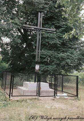 |  Dziś - krzyż upamiętniający miejsce w którym stał kościół parafialny, spalony przez Ukraińców w 1943 r. (zdj. ze strony www.kresowianie.prv.pl).