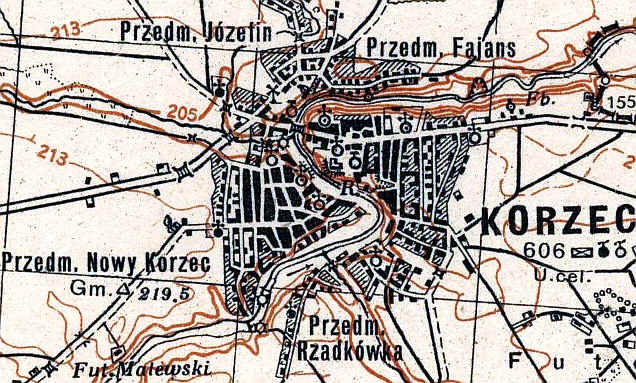 | Projekt WYKAZU GOSPODARSTW, stan w około 1939 r. | 1. | AFELT | IN. | 2. | NOWAKOWSKI | IN. | 3. | SAŁACKI | Apolinary - szewc, żona (imię nieznane), dzieci: Kazimierz (w Nowinach), Janina 1919 (m.Antoni Tomasik z Nowin), Antoni. Po wojnie w Sypniewie. | 4. | ŻÓŁKIEWSKI | Marian - s. Bazyla i Zofii z d. Suska, dzieci (jednego syna rozstrzelali gestapowcy), | 5. | KAMIEŃSZCZYK | Makary - s. Nazara i Krystyny, żona Konstancja z d. Osicka (brat Teofil w Antolinie), dzieci: Jerzy Romuald, Maria. | 6. | MALEWICZ | IN. | 7. | WALEWACZ | Aleksander 1890 - s. Tarasa i Paraskiewy Słomin lub Sołominek. | 8. | DUSIATSKI - | RUDOMINO Stanisław, żona Zofia Endrukajtis (aresztowana przez NKWD w kwietniu 1940 i rozstrzelana). Byli nauczycielami w szkołach Koreckich. | 9. | OKĘCKA | Zofia (przyszła druga żona Stanisława z poz. 8.). Nauczycielka. | 10. | JAGIEŁŁO | Czesława, nauczycielka, dzieci: Ryszard (rozstrzelany) i Maria. Siostra Czesławy to Wiktoria Chmielewska. Po wojnie wszystkie mieszkały w Gliwicach. | 11. | SIELAWA | IN. - prowadzili w Korcu delikatesy. | 12. | KOTWICA | Franciszek - piekarz. | 13. | MASALSKI | IN. | 14. | STEFANOWSKI | IN., syn Władysław. Po wojnie w Łagiewnikach. | 15. | KUCMUS | Antoni - s. Tomasza (s.Kazimierza i Ewy z d. Baranowska) i Apoloni z d. Gajewska, I żona Maria Sińkiewicz (śl.1885), II żona Marianna Lewkowicz, (śl.1891), III żona Honorata Piekarz (śl.1896), dzieci: Anna, Janina, Marian, Antonina, Maria. | 16. | STANISZEWSKI | IN. | 17. | PIASECKI | Antoni - s. Pawła i Marii z d. Wąchalska, żona Rozalia z d. Obudzińska, dzieci: Stanisław ~1920 (żona Jadwiga z d. Grabowska - c. Antoniego), Zofia, Maria, Jadwiga, Roman, Wiktoria. | 18. | GRABOWSKI | Antoni - s. Karola i Marii z d. Sikorska, żona Karolina z d. Karasiewicz, dzieci: Czesław 1920 (ż.Olga 1922 z d. Ustimenko), Jadwiga, Tadeusz, | 19. | CHMIELEWSKA | Wiktoria - nauczycielka, jej siostra to Czesława Jagiełło. Po wojnie obie mieszkały w Gliwicach. | 20. | GLASS | IN. - kierownik szkoły żydowskiej w Korcu. Po wojnie mieszkał w Izraelu. Zm. w ok. 1960 r. | 21. | DIACZUK | Teodor, żona Irena, dzieci: Nadzieja, Katarzyna. | 22. | DRELICHOWSCY | Dzieci Witolda 1865-1924 (pracował w cukrowni hr. Potockiego, s. Wincentego i Teofili z d. Sobolewska) i Pauliny 1882-1938 z d. Sadowska: | | DRELICHOWSKI | Konstanty 1912-1994 (+Kętrzyn), Zygmunt (poniżej), Kazimierz 1914–2000 (inżynier, przed wojną mieszkał w Warszawie, po wojnie w Łodzi, od 1963 roku w USA), Benedykt +1994 (po 1945 r. w Łęczycy), Piotr +2004 (najmłodszy z rodzeństwa, w czasie II WŚ mieszkał w Warszawie, aresztowany, więzień Pawiaka, wywieziony do Auswitz, ewakuowany do Buchenwaldu, skąd wyzwoliły go wojska amerykańskie. Wstąpił do MP USA. Uczestniczył w procesie norymberskim jako strażnik i świadek, zmarł w USA). | | DRELICHOWSKI | Zygmunt 1902-1945, zginął w marcu w Wałczu, żona Maria 1911 z d. Palczewska, dzieci: Walentyna 1936 i Jadwiga 1941. Po wojnie osiedli w Wałczu. | 23. | WOJTCZAK | Edward +1940, żona (śl.1927) Leontyna 1905 z d. Przyłucka - c. Teofila i Stanisławy z d. Śniechowska (zam. Aleksandrja), córki: Stanisława i Antonina. Edward był policjantem, aresztowany przez NKWD 17.09.1939r., rozstrzelany w Ostaszkowie. Leontyna i córki zostały wywiezione na sybir w lutym 1940. W 1946r ewakuowani do Polski. Na stałe zamieszkali w Gryfinie. | 24. | GORCZYCKI | Zygmunt Jan, żona Józefa Bouffał. | 25. | MAJERSKI | Leon - s. Władysława i Emilii z d. Gorczycka, żona Janina Aleksandra z d. Gorczycka, dzieci: Leszek i Ala. Właściciel okazałego domu w Korcu. | 26. | CHODAKOWSKI | Antoni, żona Feliksa, córki: Julia (m. Mieczysław Sałacki) i Zenaida 1922 (m. Henryk Bizunowicz), | 27. | KORZENIOWSKI | Aleksander, żona (chyba z d. Paszkowska - domysły na podst. treści w wykazie z Dermanki). | 28. | GODZICH | Michał, żona Antonina +1972 z d. Paszkowska, dzieci: Zofia 1927-~1980, Ryszard ~1933-~1975, Wanda 1937-2009. Michał był komendantem policji w Korcu, 18 września 1939 r. został aresztowany przez NKWD, wywieziony do Ostaszkowa do pracy w kopalni, zamordowany w kwietniu 1940 r. w więzieniu w Twerze, pochowany w Miednoje. Jego żona i dzieci ukrywali się do 1943 r. u swojego brata Michała w Dermance (poz. 50), następnie w wyniku ataku banderowców uciekli razem z rodziną Michała do Mokrego na Polesiu. Stamtąd wyjechali do Międzyrzecza Koreckiego. Po wojnie w Krośnicach (ob. woj. dolnośląskie). | 29. | MUSZYŃSKA | Tekla 1888-1944 z d. Howorska - c. Józefa i Heleny z d. Sobotkiewicz, wdowa po Stanisławie +1932 (Hallerczyk, właściciel restauracji 'Brazylia' w Korcu), dzieci: Józef (na robotach przymusowych w hitlerowskiej Austrii), Zofia (zm.w dzieciństwie), Maria 1924, Anna 1926 (zesłana na roboty przymusowe do hitlerowskiej Austrii), Elżbieta 1929. Mieszkali w Korcu przy ul. Hallera 1, po wojnie w Wałczu. Józef i Anna nie żyją, Maria mieszka obecnie w Radzikowie koło Łagiewnik, Elżbieta w Dzierżoniowie. | 30. | DOBROWOLSKA | Józefa 1883 z d. Persyk, wdowa po Wojciechu, dzieci: Roman 1920 i Teodozja. Po wojnie w Wałczu, tylko Roman we Wrocławiu, potem w Nowej Rudzie. | 31. | WIĄCEK | Antoni 1889-1940 (*Borowa k.Mielca) - s. Józefa i Wiktorii z d. Małek, kapitan rezerwy, żona Helena z d. Sajpel, syn Marian i jeszcze jeden IN. oraz córka IN. Antoni swoje gospodarstwo w Hallerowie pozostawił w zarządzaniu bratu Stanisławowi. Z rodziną osiadł w Korcu, gdzie prowadził hurtownię tytoniową. Został aresztowany przez NKWD na drugi dzień po wejściu bolszewików do Polski. Zamordowany w Katyniu. | 32. | TERLECKI | Franciszek 1904 - s. Ignacego i Barbary z d. Piasecka, żona Elżbieta z d. Paszyńska - c. Waleriana (s. Łukasza i Anny) i Aleksandry z d. Sawicka (Ośnicka), dzieci: Stefania 1933, Zofia 1935, Bolesław 1938, Jadwiga 1941. Po wojnie Sypniewo, potem Bydgoszcz. | 33. | CZOŁOWSKI | Bolesław, wdow