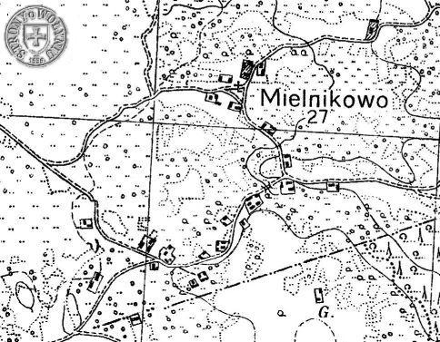 Inaczej MIELNKI. W 1936 roku było tu 27 zagród.  Rzeczywiste położenie zagród w 1936r.