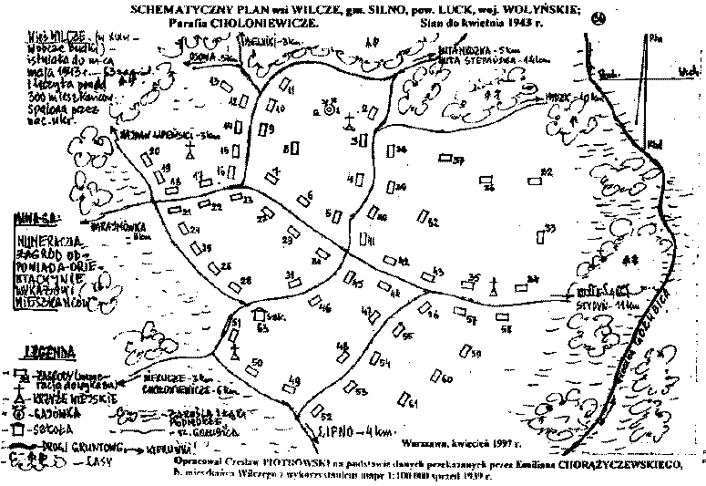 Wykaz mieszkańców w poz. 2-33, 35-47, 50-59, 61-63 (pozostałe zostały połączone lub usunięte), oraz opis ich losów opracował Emilian CHORĄŻYCZEWSKI, były mieszkaniec i uczestnik samoobrony wsi Wilcze, obecnie zamieszkały w Wołowie. Opracowanie redakcyjno-techniczne Czesław PIOTROWSKI, Warszawa, kwiecień 1997 r.