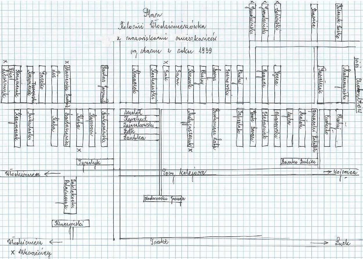 Projekt WYKAZU GOSPODARSTW, stan w około 1939 r. | 1. | MRÓZ | Adam - s. Jana i Elżbiety, żona Zofia z d. Gawlik, dzieci: Czesław, Tadeusz, Marian, Wala. Adam był szewcem, wyjechał przed 43 rokiem, mieszkał w Gorzkowie, a następnie w Gdańsku-Oliwie. | | 2. | KUCYBAŁA | Stanisław 1914 - s. Józefa i Antoniny z d. Dębicka, żona Maria 1906 z d. Witkowska - c. Wawrzyńca, syn Stanisław 1942. | | 3. | CHOŁUJ | Stanisław 1901 - s. Antoniego i Katarzyny z d. Bąk, żona (śl.1930) Józefa 1891 z d. Pizoń (wdowa, I m.Michale Cudziło) - c. Michała i Agnieszki z d. Podkańska, córka Delfina 1935. | | CUDZIŁO | IN. 1923 - c. Michała (s.Marcina i Zofii z d. Oleksak) i Józefy z d. Pizoń (śl.1920). | | 4. | CHOŁUJ | Ignacy - s. Antoniego i Katarzyny, żona (śl.1936) Stanisława z d. Dolniak, dzieci: Krystyna 1937, Genowefa Natalia 1942. | | 5. | DZIUBKA | Stanisław - s. Piotra i Stanisławy z d. Kowalska, żona (śl.1931) Stefania z d. Świerszcz, dzieci: Feliks 1931, Tadeusz 1935, Stanisława Danuta 1936. | | 6. | FALAPSKI | Karol, żona Katarzyna z d. Prus, syn Stanisław Zbigniew 1931. | | 7. | GOGACZ | Michał, żona Feliksa z d. Krawiec, dzieci: Leonarda 1929, Adam 1932. | | 8. | JARMUŁ | Jan 1909 - s. Marcina i Katarzyny z d. Dubiel, I żona (śl.1935) Janina z d. Pawlos, córka Teodozja Alicja 1938 (*Włodzimierz, szpital); II żona (śl.1938) Marianna z d. Kozina, córka Stanisława 1941. | | JARMUŁ | Władysław - s. Marcina i Katarzyny, żona (śl.1931) Bronisława z d. Krowiec - c. Józefa i Rozalii z d. Born. | | JARMUŁ | Zygmunt, żona Maria z d. Balicka, syn Marian Stanisław 1943. | | 9. | KAPROŃ | Stanisław - s. Pawła i Katarzyny z d. Myszak, żona (śl.1938) Katarzyna z d. Gogacz, dzieci: Tadeusz Adam 1938, Edward Adam 1940, Jan Kazimierz 1942. | | 10. | KARCHUT | Edward, żona Janina z d. Łokaj, dzieci: Leokadia Janina 1939. | | 11. | KOTOWSKI | Grzegorz - s. Bazylego i Agnieszki z d. Kuszczak (Krzyszczak?), żona (śl.1937) Tekla z d. Kuryło, dzieci: Sławko 1940. | | 12. | KRAWIEC | Antoni, żona Józefa z d. Wójcicka (Wojciechowska?), dzieci: Anna 1928, Marianna 1930, Stanisława 1932, Franciszek 1936. | | 13. | KRZACZEK | Leonard - s. Wojciecha i Marianny z d. Złamaniec, żona (śl.1927) Maria z d. Pizoń, dzieci: Tadeusz 1928, Jerzy Ferdynand 1931, Krystyna Irena 1934, Ryszard 1937. | | 14. | KRZOSKO | Stanisław, żona Katarzyna z d. Król, dzieci: Stanisław 1927, Leokadia 1929. | | 15. | KRZYSZCZAK | Bolesław 1911 - s. Wojciecha i Anny z d. Pizoń, żona (śl.1930) Stefania 1909 z d. Kaproń, dzieci: Karol 1931, Leokadia 1933, Helena 1935, Kazimiera Mirosława 1938. V.n.: Kryszczak, Krzysiak. | | 16. | LIS | Jan 1909 z Nowych Koszar - s. Bartłomieja i Marianny z d. Sereda, I żona (śl.1932) Antonina 1914 z d. Gnieciak ze Starych Koszar, córka Alfreda 1933; II żona (śl.1938) Aniela 1919 z d. Kusiak - c. Franciszka, dzieci: Irena Janina 1939, Zdzisława Franciszka 1942. Brat Jana - Michał w Starych Koszarach. | | 17. | MATUSZYŃSKI | Adolf, żona Karolina z d. Pizoń, córka Helena 1925. | | 18. | MIKULICKI | Edward - s. Józefa i Pauliny z d. Tyczyńska, żona (śl.1938) Genowefa z d. Krzyszczak, dzieci: Wiesława 1939, Mieczysława 1941, Lucyna Irena 1943. | | 19. | MISIURA | Jan 1907 - s. Józefa i Marianny z d. Góreczna, żona (śl.1931) Marianna 1912 z d. Franczuk, dzieci: Czesława 1931, Leokadia 1933. | | 21. | OKAPIEC | Maciej, żona Marianna z d. Dworniczak, dzieci: Michał 1927 (*Ryławica), Anna 1929, Jan 1930. | | 22. | PACHUTA | Łukasz, żona Aniela z d. Kuszałek, dzieci: Stanisław 1929. | | 23. | PATRO | Franciszek, żona Katarzyna z d. Szydłowska, dzieci: Bronisława 1925 i może II żona (albo to inna rodzina?) Agnieszka z d. Kubaj, dzieci: Andrzej 1929. | | 24. | PAWEŁCZAK | Jan, żona Józefa z d. Gruchała, dzieci: Danuta Maria 1936, Teresa 1937, Walery Ryszard 1941, Cecylia Helena 1943. | | 25. | SEŃKO | Jan, żona Józefa z d. Żąd, dzieci: Marianna 1936, Jerzy 1937. | | 26. | SOSNOWSKI | Wincenty - s. Józefa i Anieli z d. Sadkowska, żona (śl.1934) Zofia z d. Chołuj, Tadeusz 1935, Janina 1940. | | 27. | STAŃCZAK | Wawrzyniec, żona Stanisława z d. Piekarz, dzieci: Genowefa 1934. | | 28. | STRECHARCZUK | Teodor, żona Feliksa z d. Rap, dzieci: Rozalia 1930. | | 29. | SUDOŁ | Jan, żona Oksenia z d. Serediuk, dzieci: Czesław 1938 (*Mikulicze), Janina 1940, Teresa Henryka 1940. | | 30. | SZYMCZUK | Józef, żona Bronisława z d. Roman, dzieci: Regina 1936. | | 31. | TĘCZA | Wawrzyniec, żona Stanisława z d. Piekarz, dzieci: Czesław 1927, Zdzisław 1930, Genowefa 1934. V.n.: Tencza. | | 32. | TUROWSKI | Mikołaj - s. Michała i Marianny z Traczyńska, żona (śl.1933) Leokadia z d. Krzyszczak (c.Wojciecha i Anny z d. Pizoń?), dzieci: Eugeniusz 1934, Reginald Roman 1935, Alicja Krystyna 1940. | | 33. | TYNDYK | Eliasz Julian - s. Jana i Ewy z d. Czob, żona (śl.1929) Katarzyna z d. Trybuch, dzieci: Edward 1930, Teresa 1936. | | 34. | WIŚNIEWSKI | Krzysztof, żona Agnieszka z d. Kunaj, dzieci: Franciszek Tadeusz (ż.Maria Rauze, dz.: Jadwiga Maria 1941, Kazimierz 1942). | | 35. | WIŚNIEWSKI | Grzegorz, Agnieszka z d. Kuszaj, dzieci: Stefan (poniżej). | | WIŚNIEWSKI | Stefan, żona Czesława z d. Karchut, córka Maria Genowefa 1943. | | 36. | ŻAK | Ignacy, żona Katarzyna z d. Dziubka, dzieci: Józefa 1931, Janina Mieczysława 1934. | | 37. | PARADOWSKI | Adam, żona Zofia z d. Szewc, dzieci: (przynajmniej) 1 syn IN. 1935-1985. | | 38. | DZIEDZIC | Stanisław - s. Antoniego i Klary, żona?, syn Marian. | Brak więcej informacji. Proszę Państwa o pomoc w uzupełnianiu wykazu. |