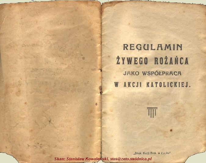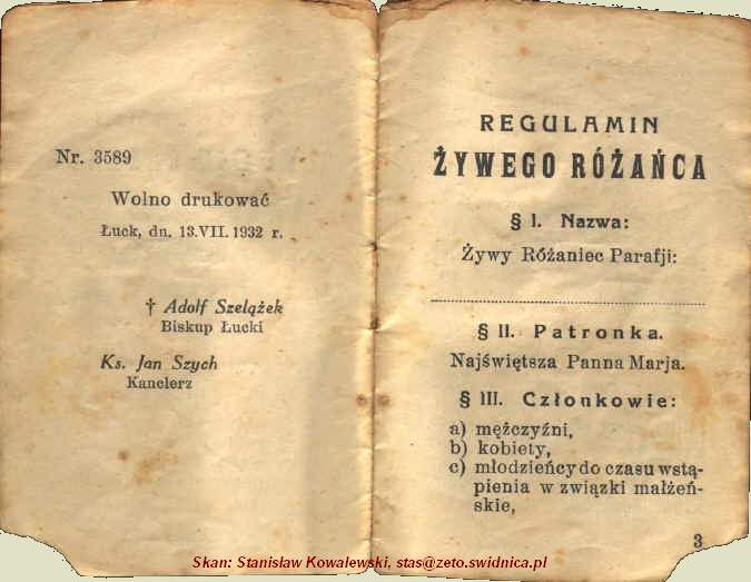 REGULAMIN ŻYWEGO RÓŻAŃCA, pozwolenie na druk nr 3589, Łuck 13 VII 1932 r.