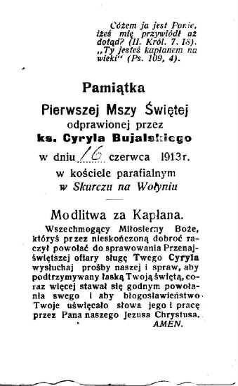 | Pamiątka pierwszej mszy św. ks. Cyryla Bujalskiego. Własność: Ryszard Bujalski.