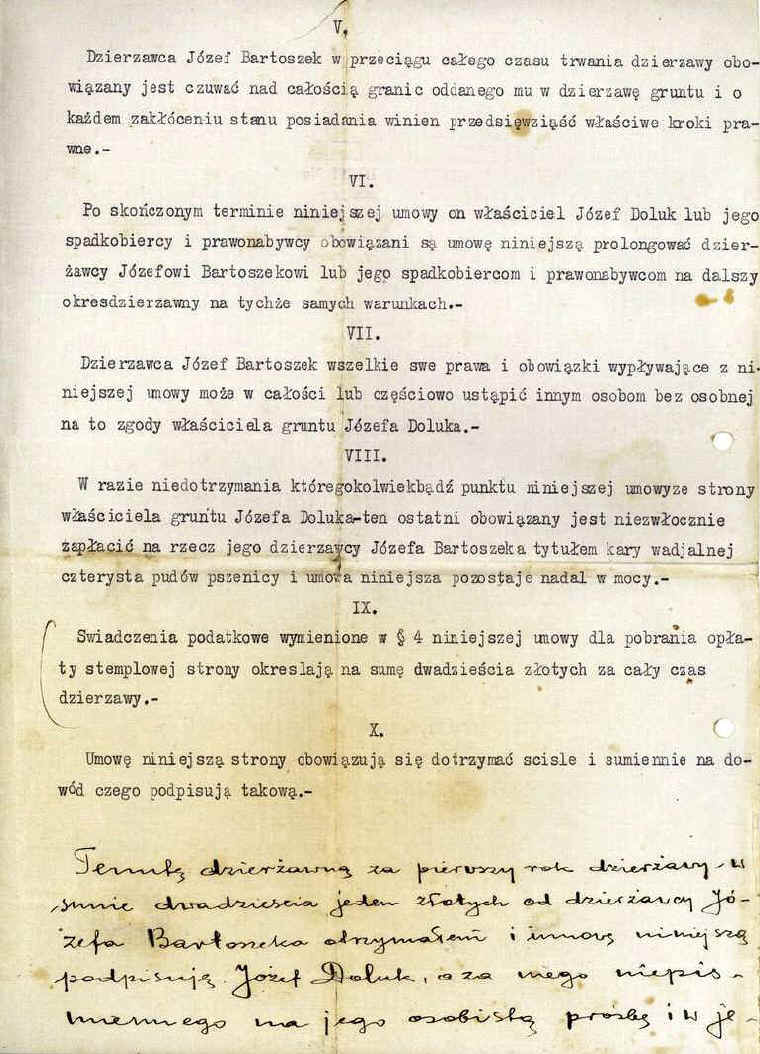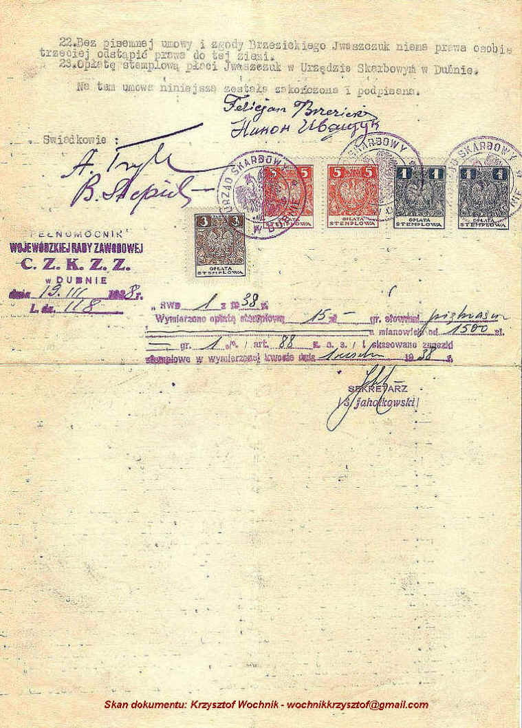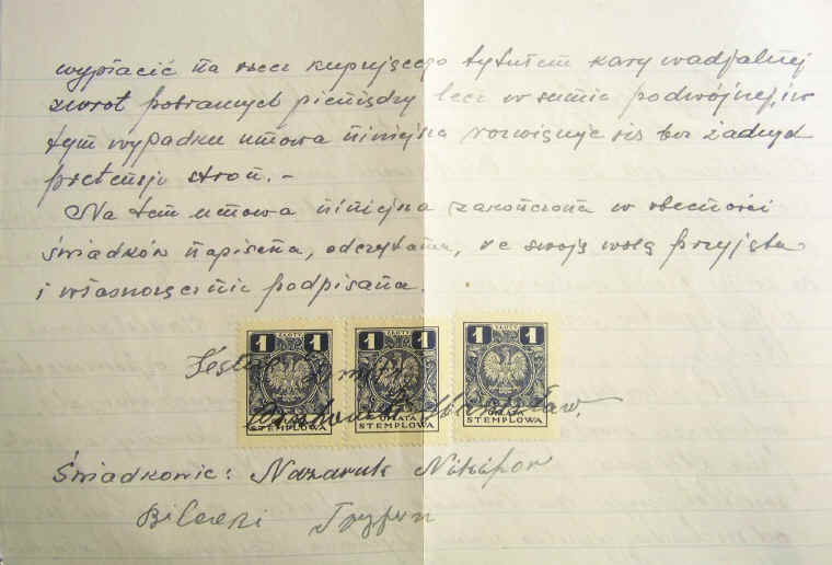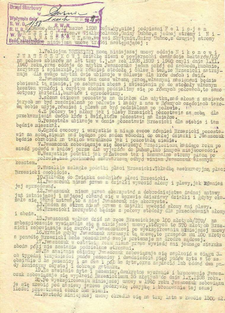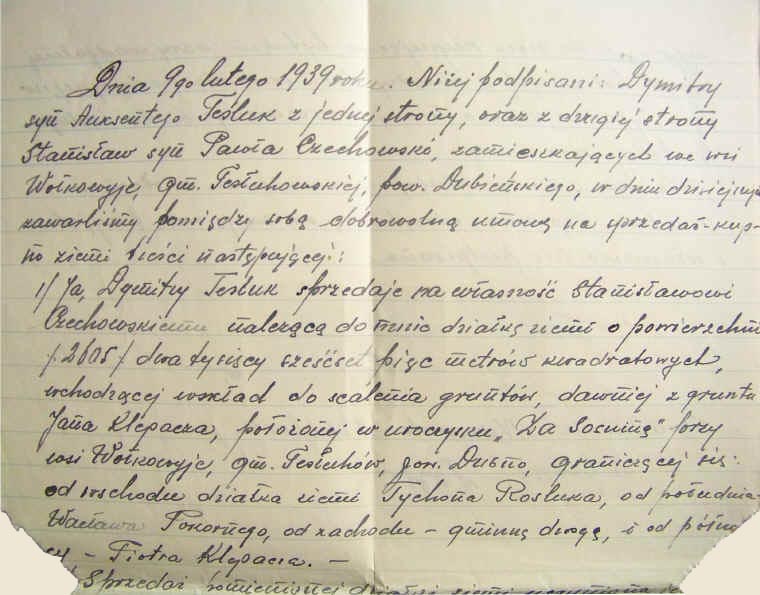 | Umowa sprzedaży-kupna ziemi pomiędzy Jelcazarem Nazarukiem i Stanisławem Czechowskim.