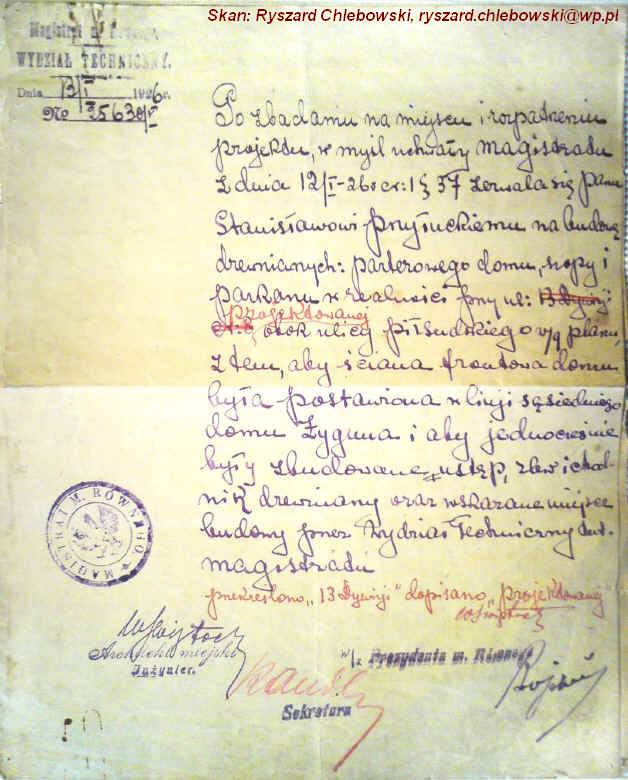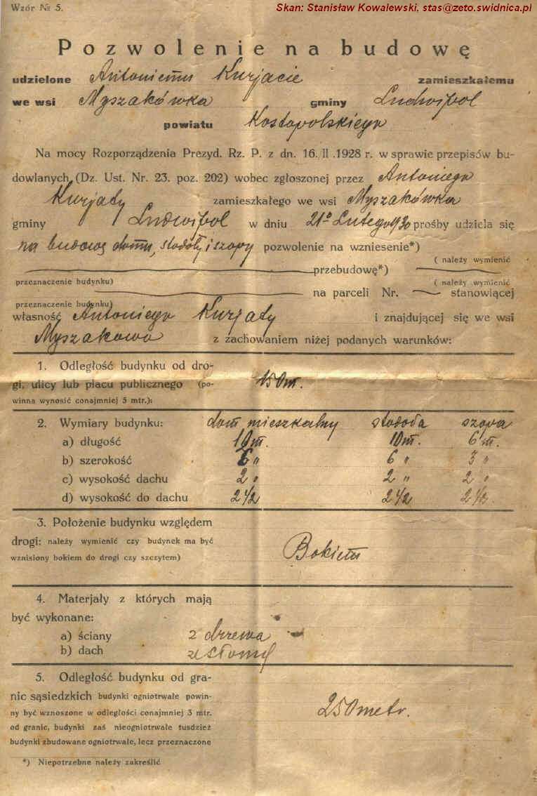| Pozwolenie na budowę w Myszakówce udzielone Antoniemu Kuriacie.