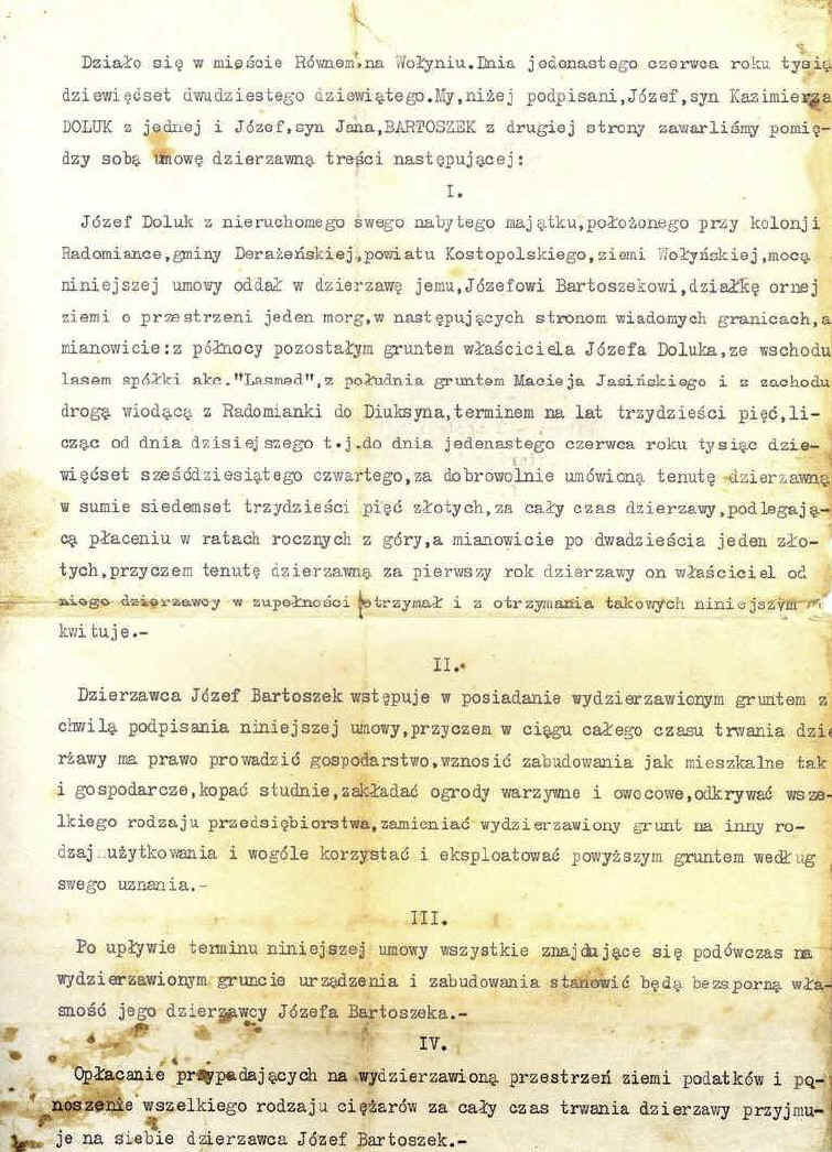 | Umowa dzierżawy gruntu w Radomiance