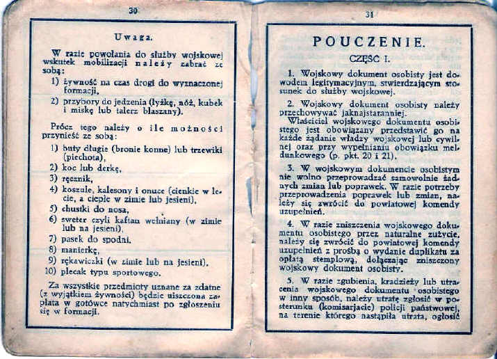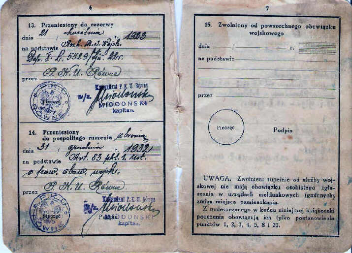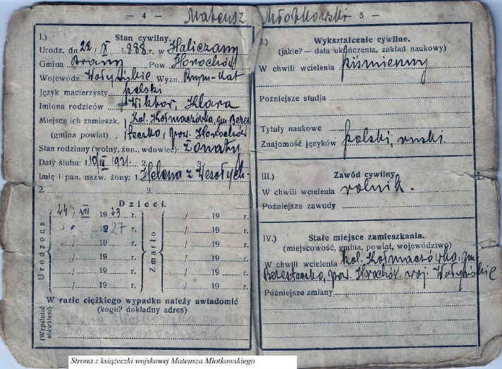 | Książeczka wojskowa - własność rodziny Stanisława Zacharzewskiego |