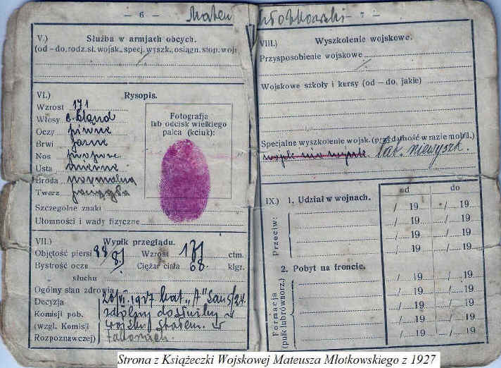 | Książeczka wojskowa - własność Antoniego Młotkowskiego s. Mateusza i Heleny z Wesołych
