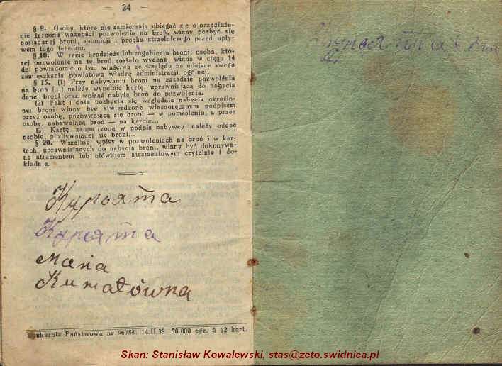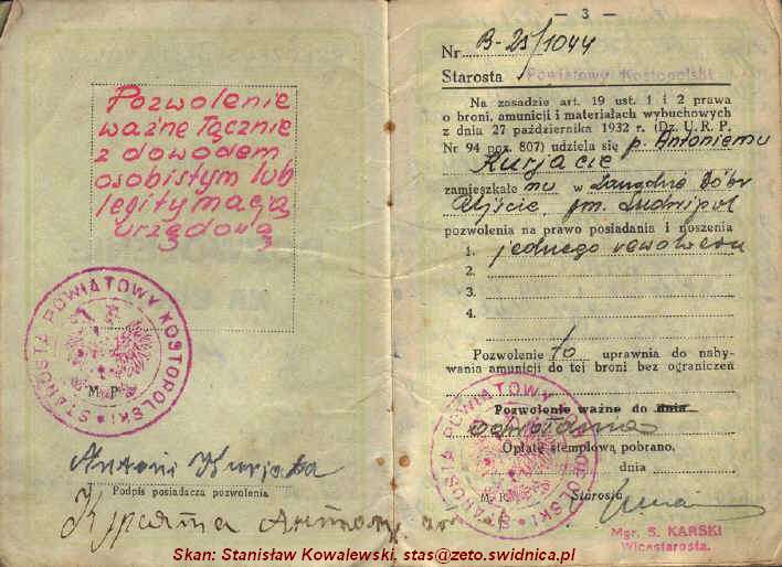 Pozwolenie na broń dla Antoniego Kuriaty z Myszakówki